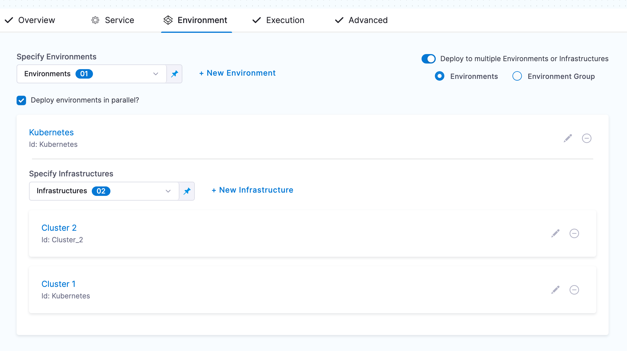 For details on Deploy to Environments or Infrastructures in parallel?, go to deploying in parallel or serial below.