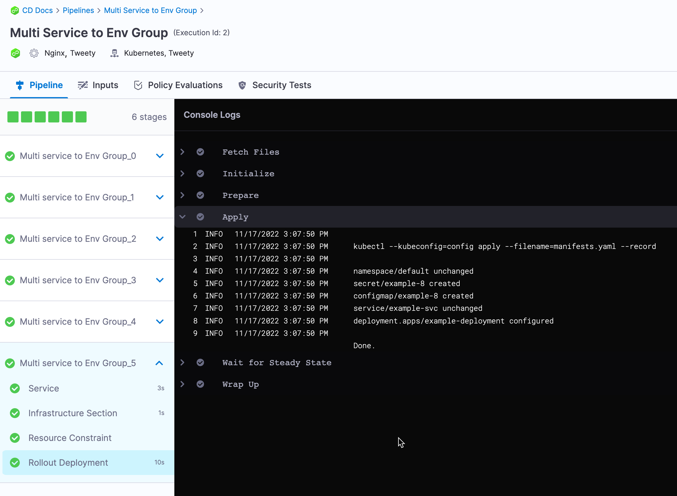 Often, you will deploy one service to one Environment in a CD stage. In some cases, you might want to use multiple services and environments in the same stage.
