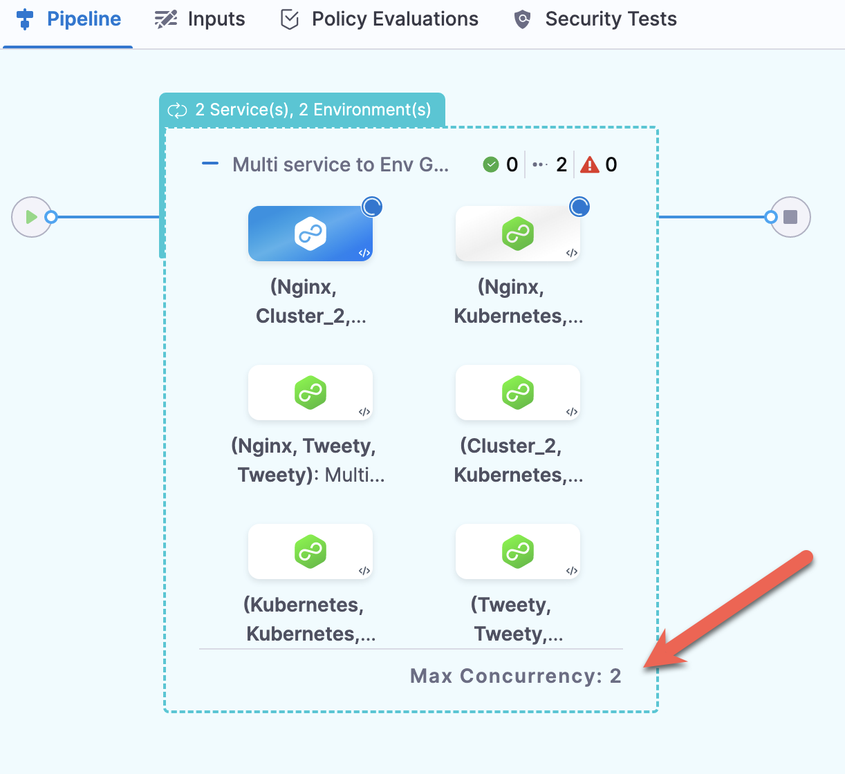 When you view a multi service or environment deployment, you can see Max Concurrency: