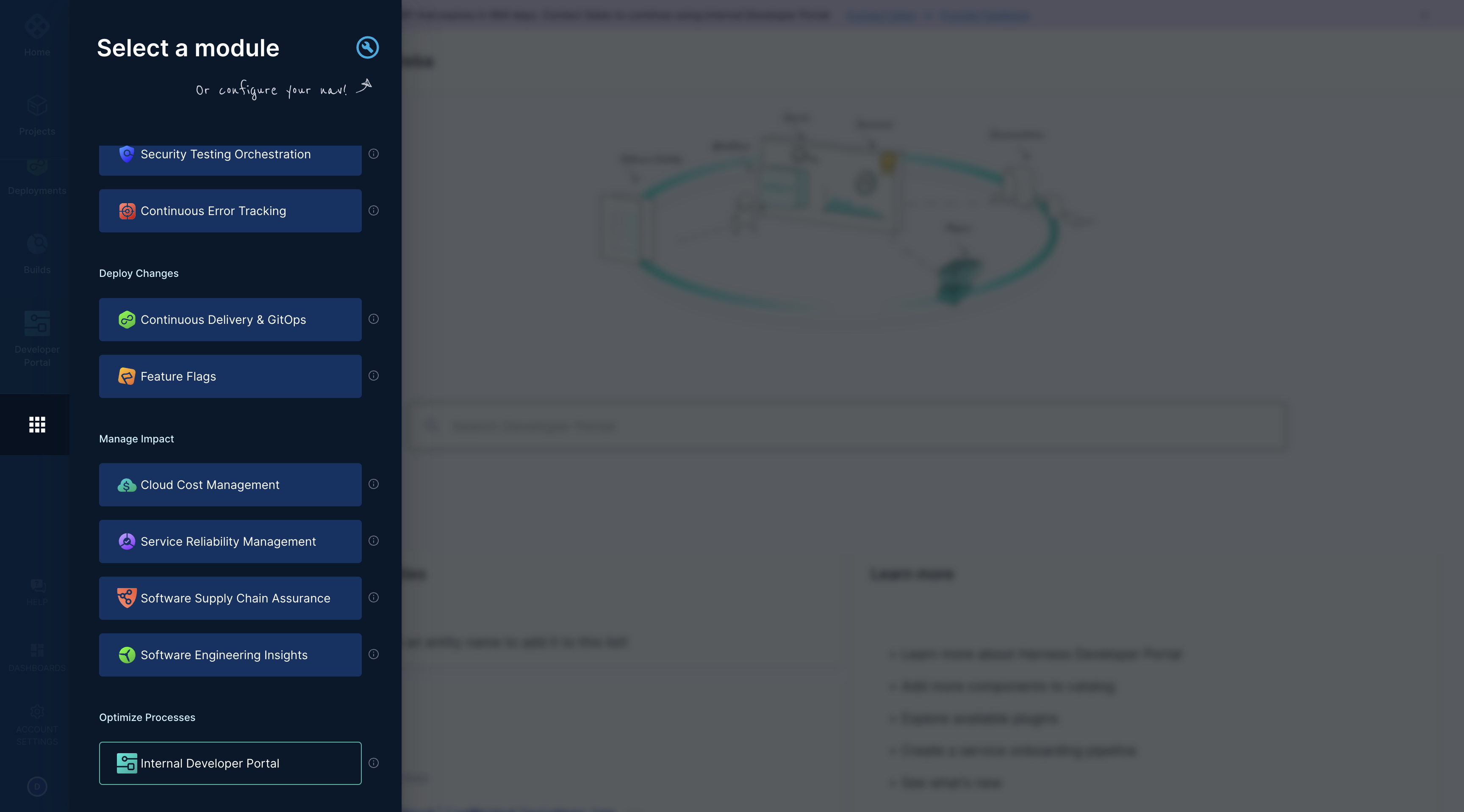 Users will now have option to onboard existing Harness services into IDP, or start with a sample service.
