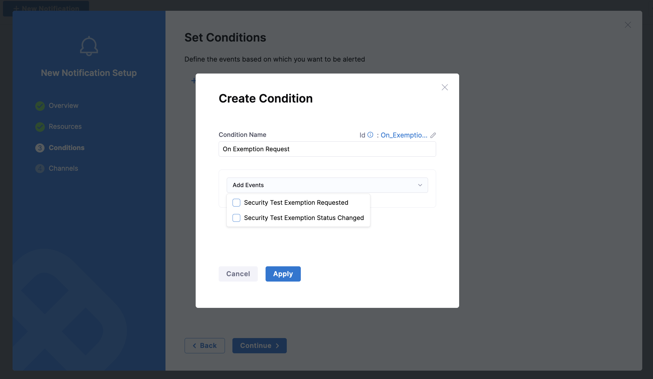 • Security Test Exemption Requested: Triggers when a new exemption is requested. See the Exemption Requested section for details.