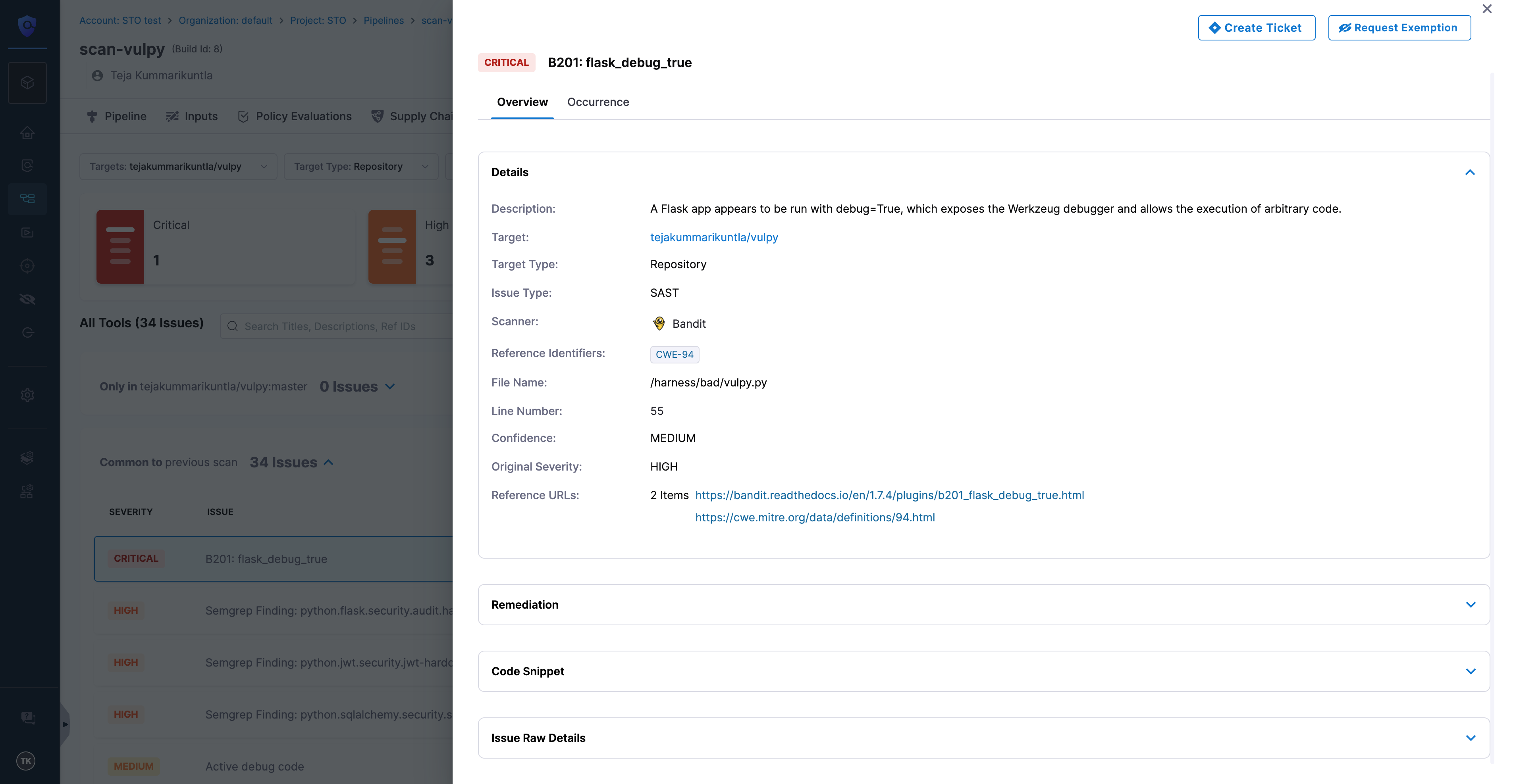• Issue Raw Details: Raw scanner details.