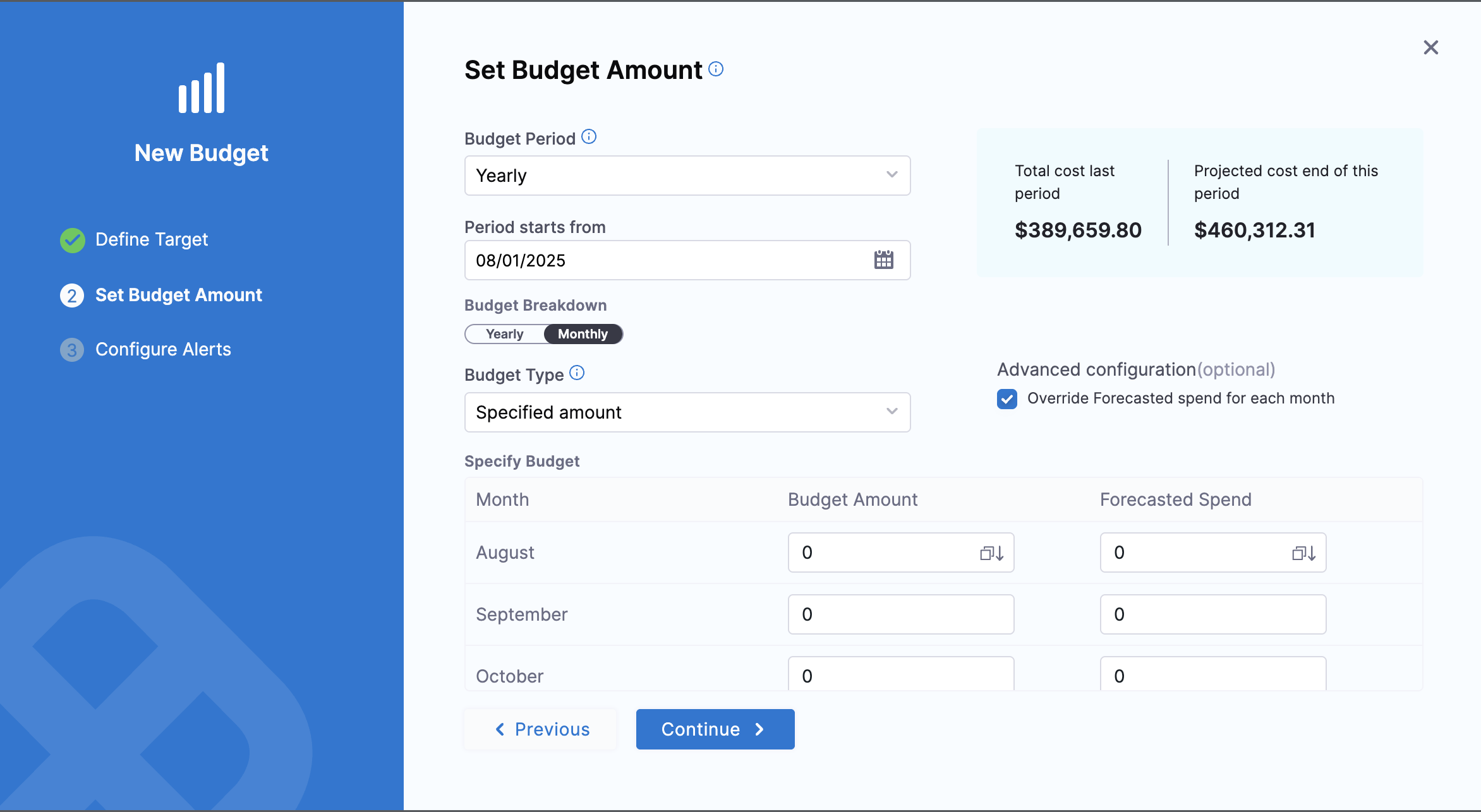 - Clone budgets with customizable options for thresholds and recipients