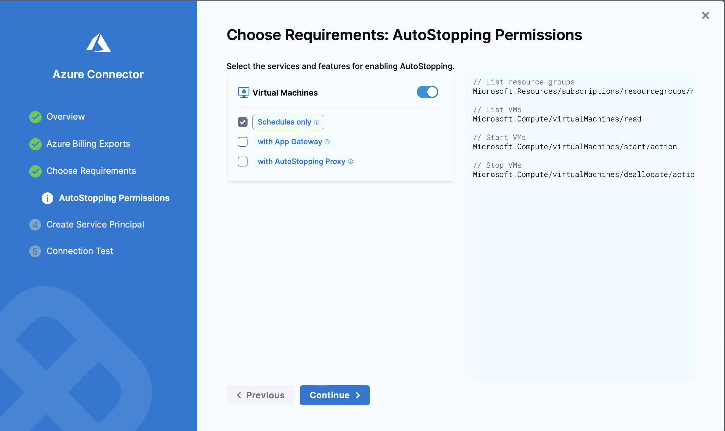 As part of Azure Connector validations for Inventory and AutoStopping, we're now checking whether the service principal has the required roles for these features: Reader role for Inventory and Contributor role for AutoStopping. These checks will run whenever