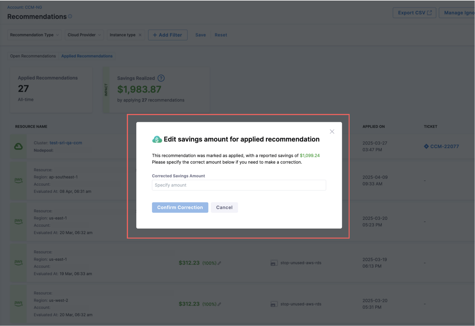 - Azure Resource Group Filtering: Added support for filtering recommendations by Azure Resource Group, aligning with Perspectives functionality and enabling more targeted cost optimization strategies. [CCM-25175]